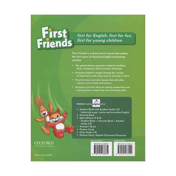 با استفاده از “First Friends 1″، کودکان میتوانند به طور مستمر و سرگرمکننده مهارتهای زبانی خود را تقویت کرده و با استفاده از این کتاب به صورت اعتماد به نفس با زبان انگلیسی برقراری کنند.